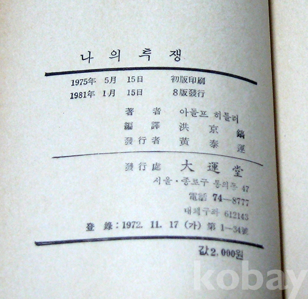 아돌프 히틀러 - 나의 투쟁 ( 1981년 대운당 발행 ).