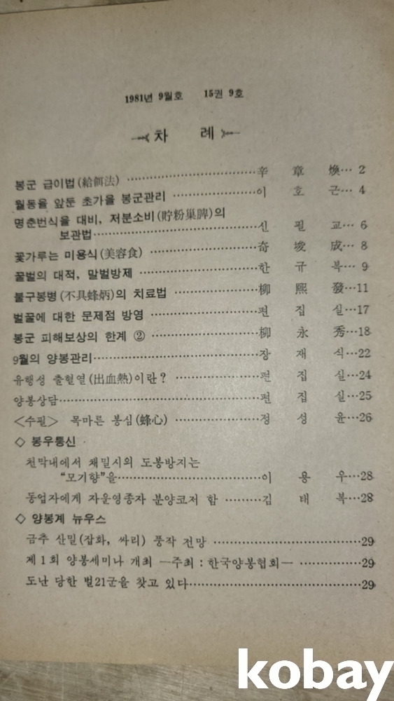 981년9월 발행된 양봉계(養蜂界) 양봉계사 발행 9월호입니다,
