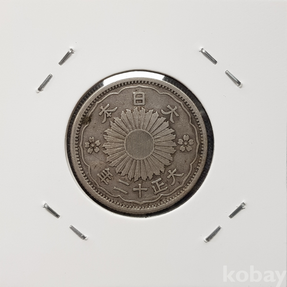 - 진품 일본 은화 - 대정(다이쇼) 12년(1923년) 오십전 욱일 은화