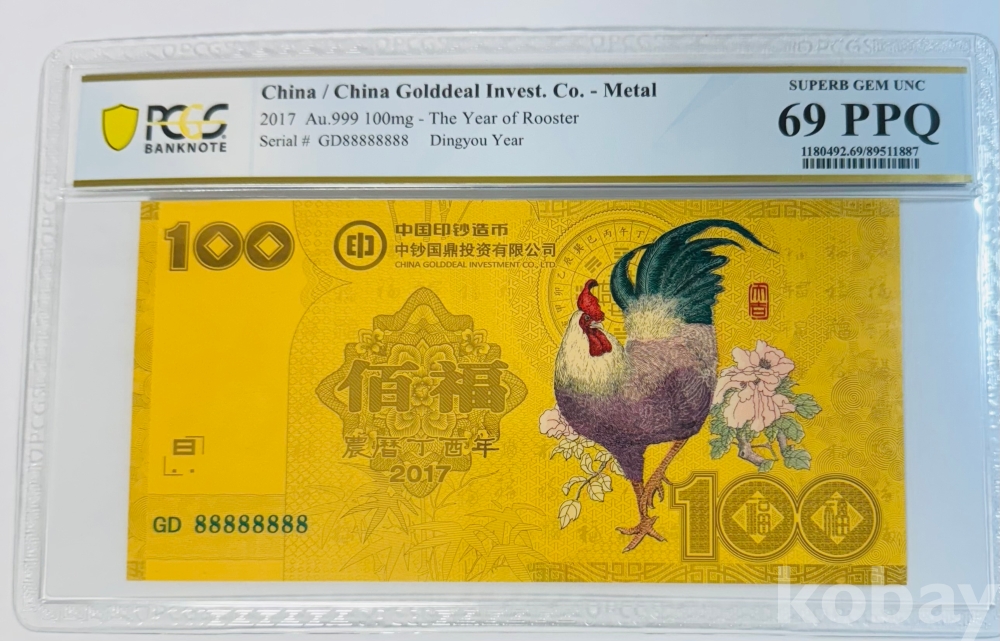 [순금 지폐] 2017년 닭의해 기념 0.1g 순금 PCGS 69 PPQ