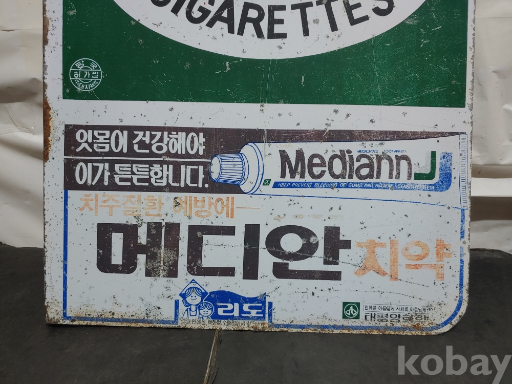 ""담배, 리도 하이얀 치약, 메디안 치약 양철 간판""1번