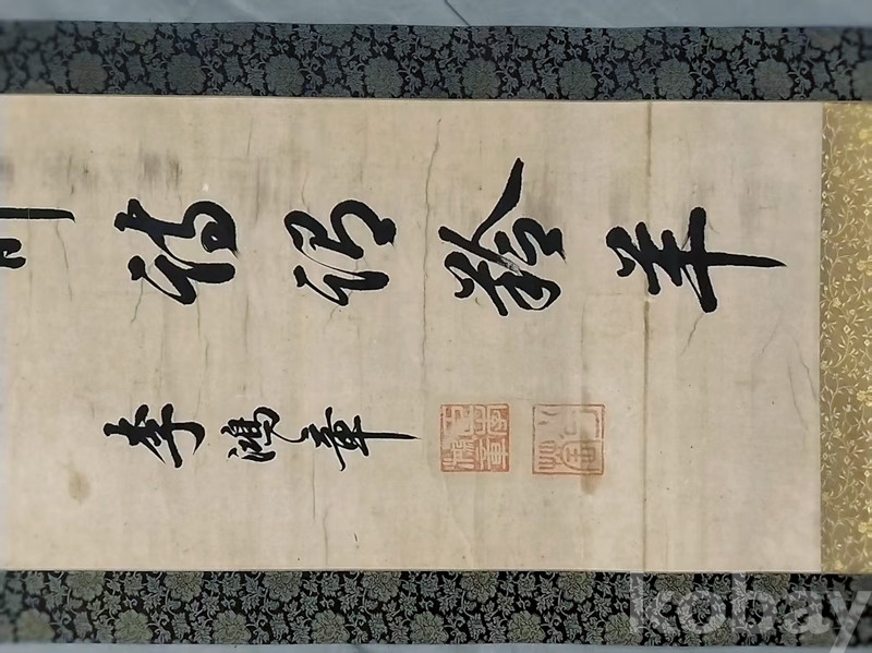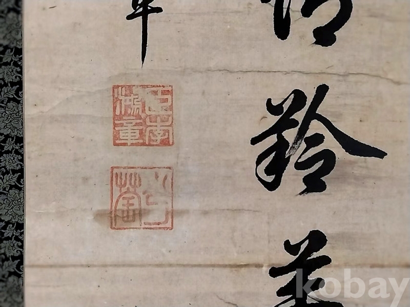 족자에 감아 펴며 보관 감상한 가로 주름과 변색 오염 등이 보입니다만