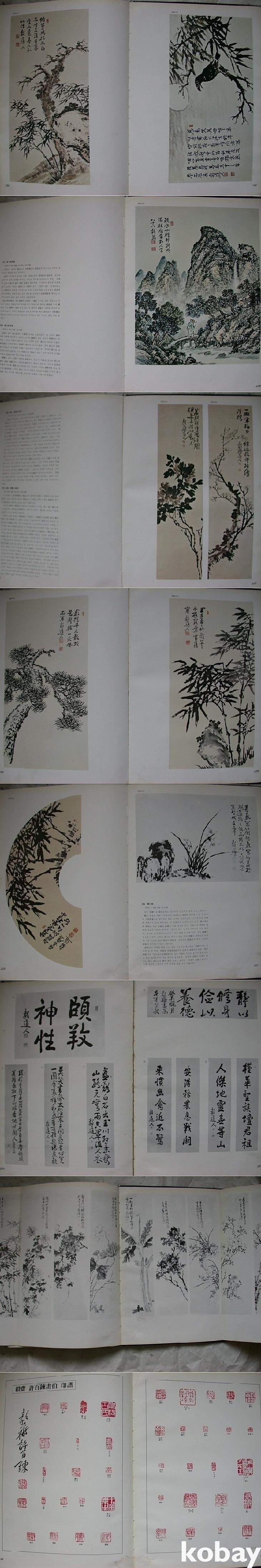 도판마다 해설이 실려 있다. 137번의 <설중유거도>(1959년)처럼 양면에 걸친 도판도 있고 초기작인 <월매도> 10곡병풍이나 205-214번의 <묵화10곡병>(1976년)처럼 양쪽으로 펼쳐보도록 대형도판으로 절첩한 것도 있다. 끝에 <의도인의 서법>이라는 간략한 설명과 서예작품 9점 및 <의재 허백련화백 인보>가 수록되어 있다.