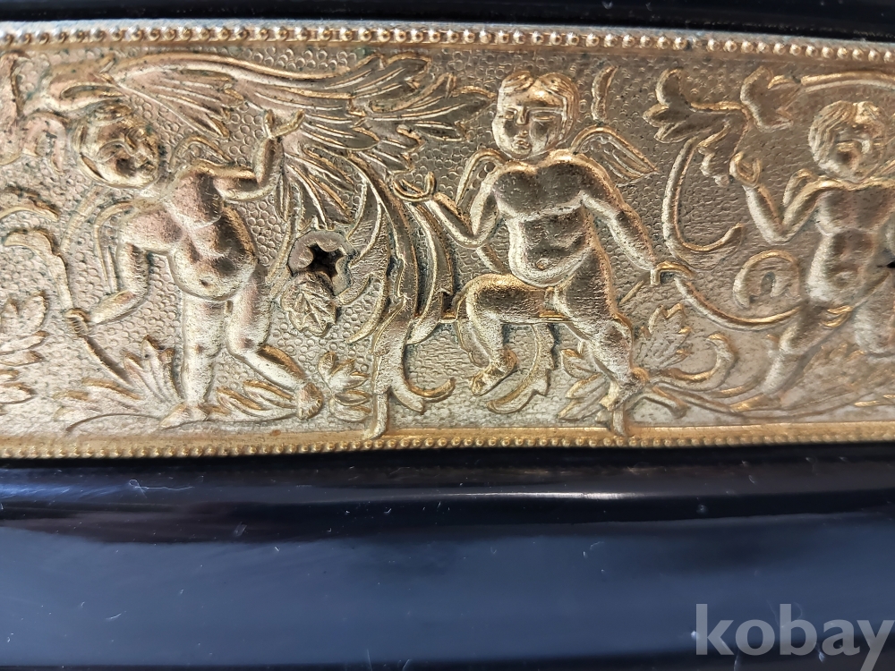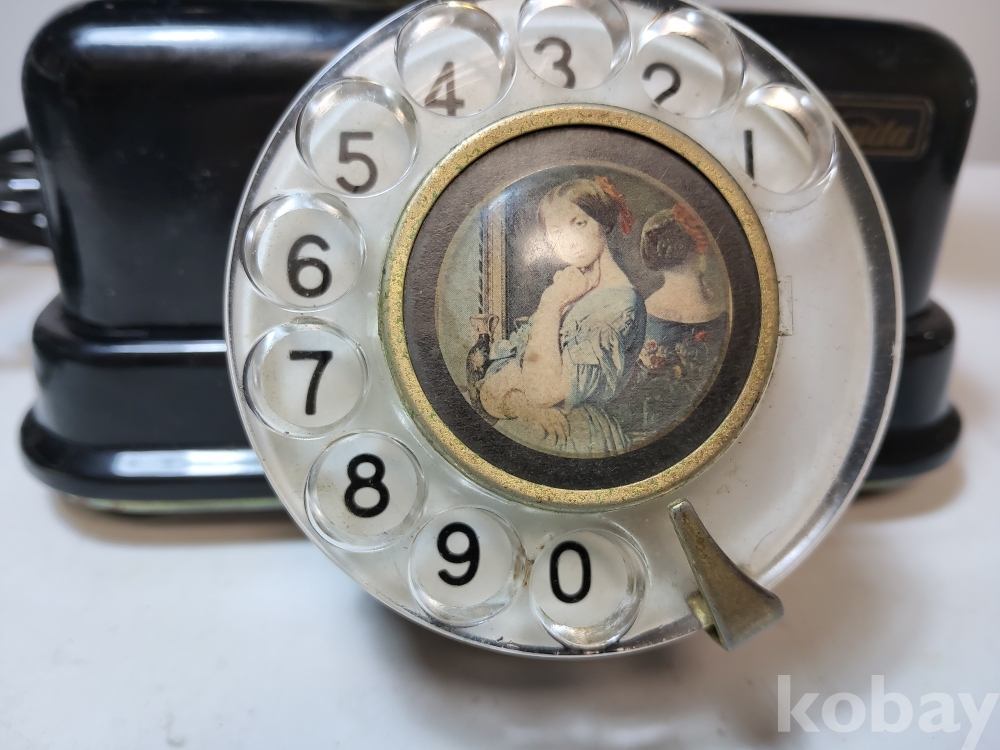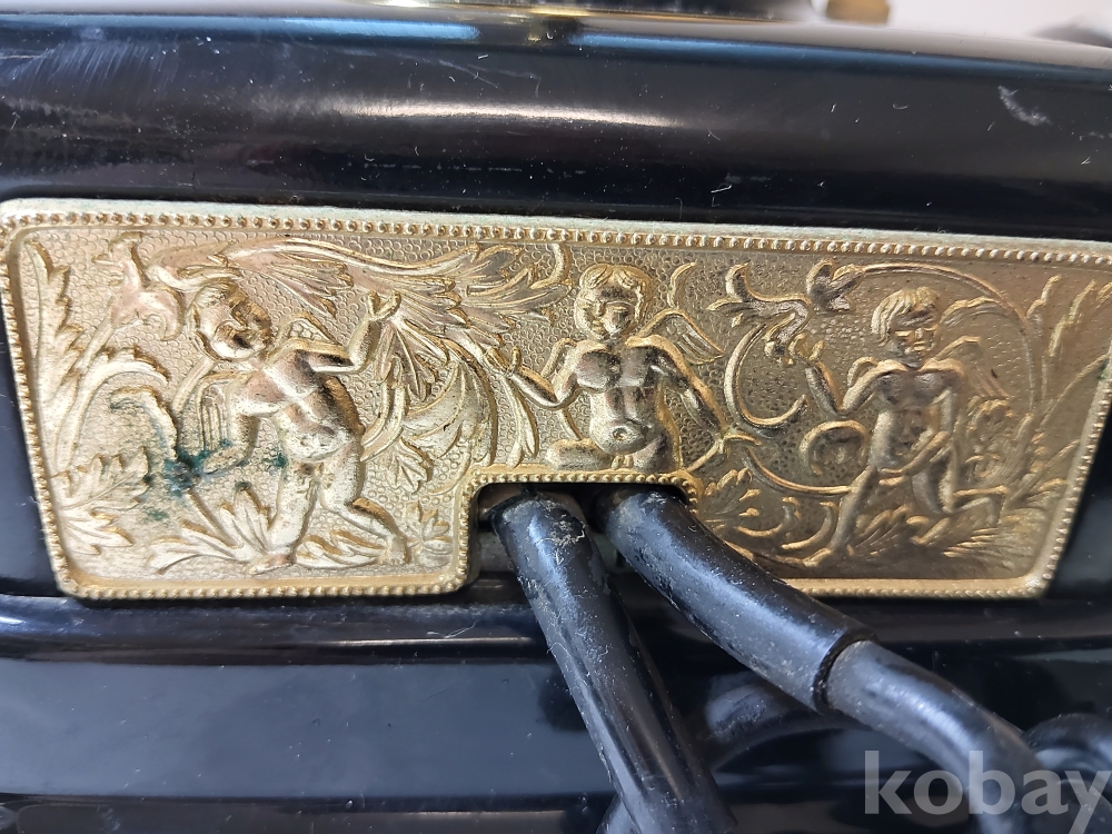 양 측면에는 금색 메탈에 옛 로마시대를 연상케 하는 벽화형의 부조식 메탈판이 부착(8, 9번 이미지)되어 기물의 격(格)을 높혀 여타 전화기와의 차별화를 꽤한 귀(貴)한 레어품임을 스스로 증명하고 있습니다.