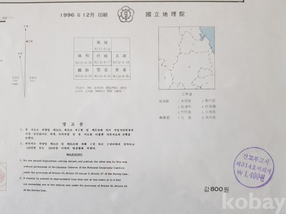 **** 1975년 1:50,000 지도 (간성) 고성군, 인제군 수록