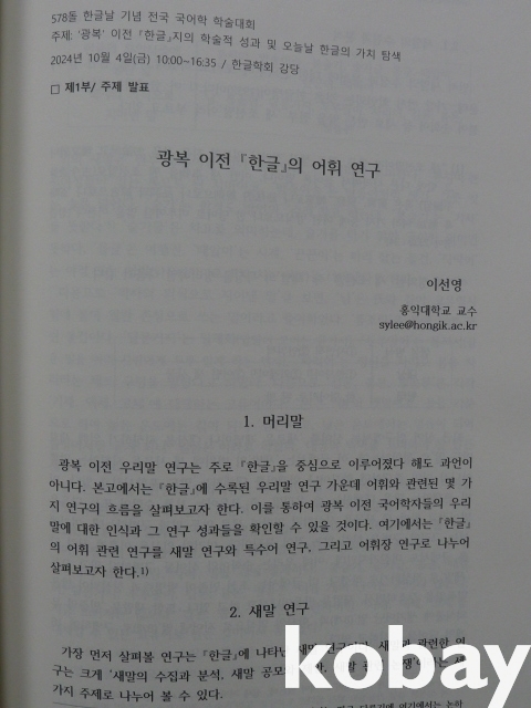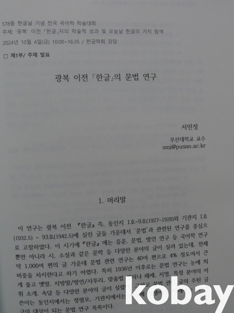 (『한글』誌) < 광복 이전 『한글』誌의 학술적 성과 및 오늘날 한글의 가치 탐색 > -2024년 한글날 기념 전국 국어학 학술대회-