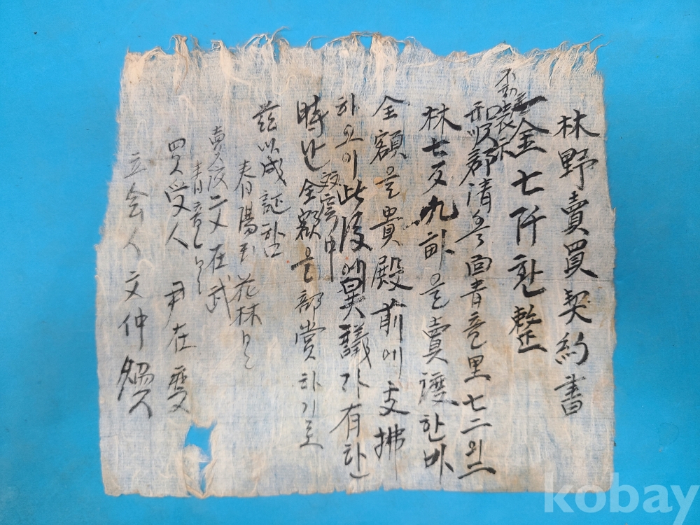 **** 1950년대 화순군 임야매매계약서(한지에 작성하였음)