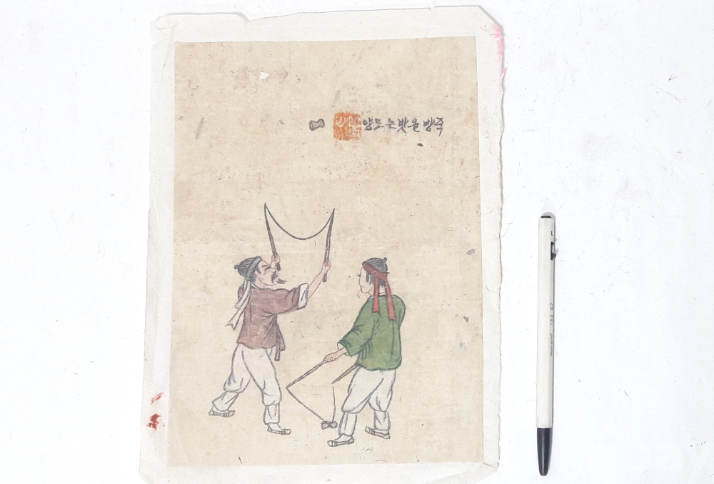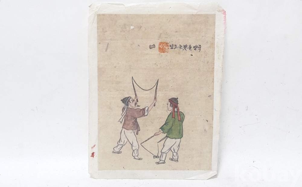 죽방울 받는 모양 (민속 그림,채색화)