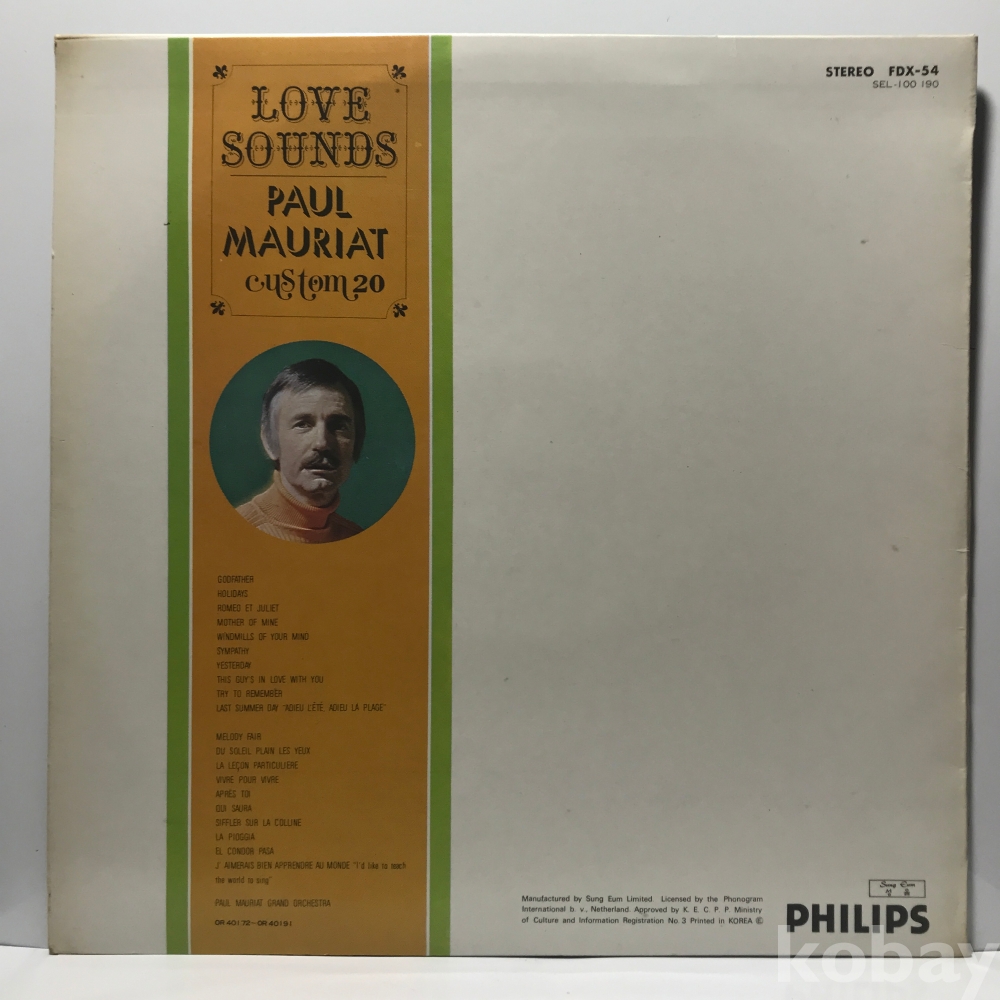 LP 82,350-67 PAUL MAURIAT LOVE SOUNDS CUSTOM 20 . 자켓 EX+ 알판 EX+ 74 년제작 국내반
