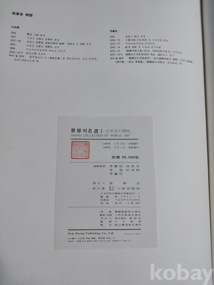 ★천원출발★ L-11.029 세계의 명화I - 르네상스시대(묶음배송불가, 착불배송)