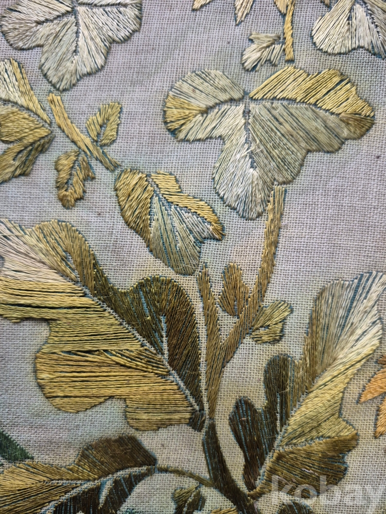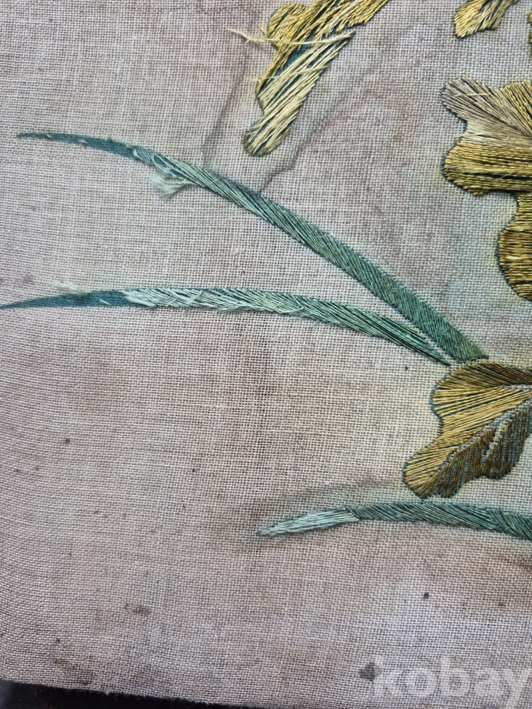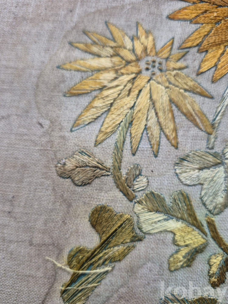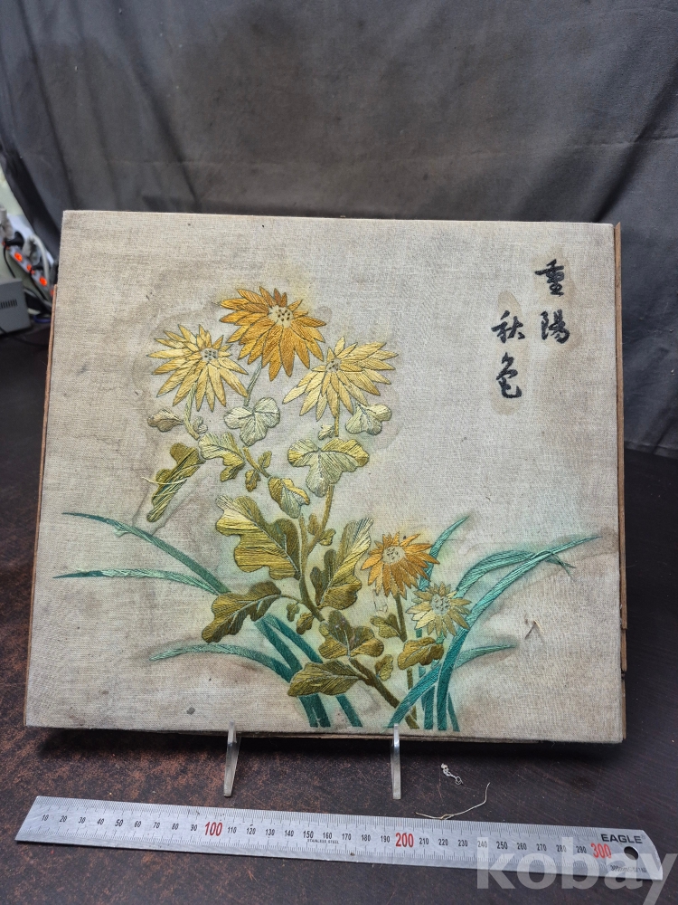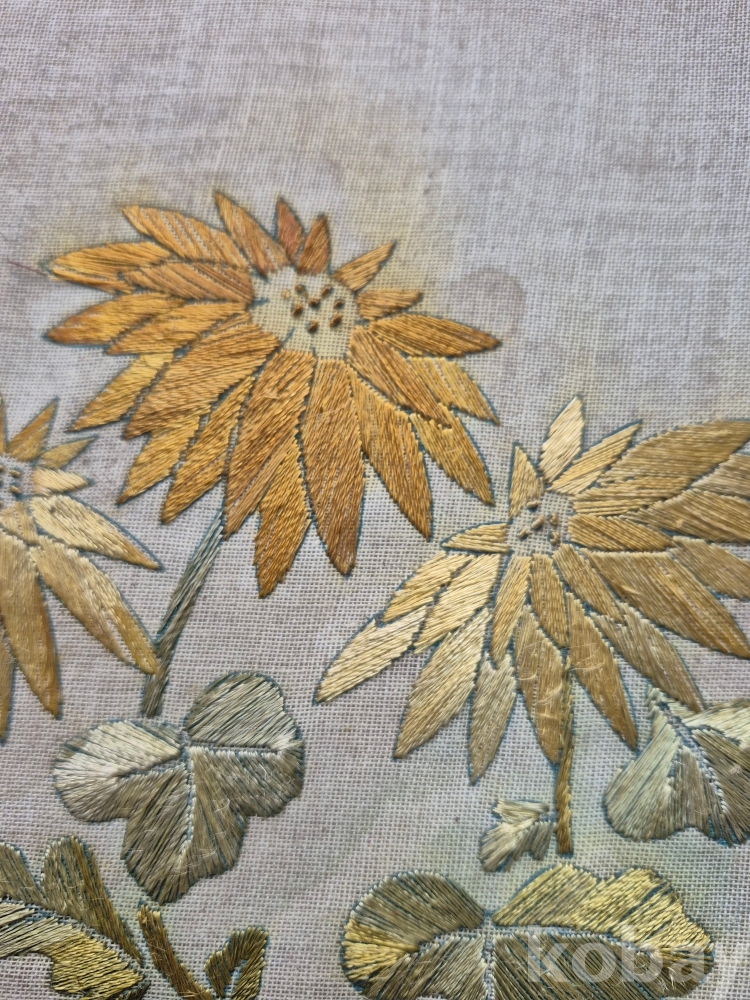 오래된 베바닥에 손으로 수를 국화를 수 놓은 작품 수 34*31*2