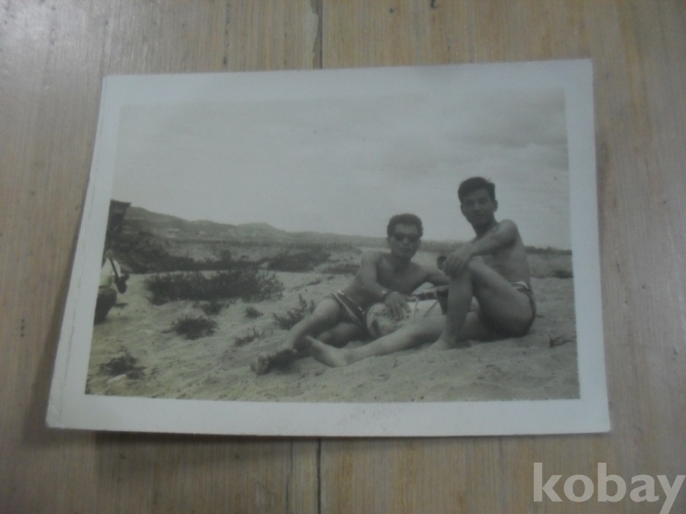 1234h)작은사진-60년대 모래사장에서 남자들 사진.