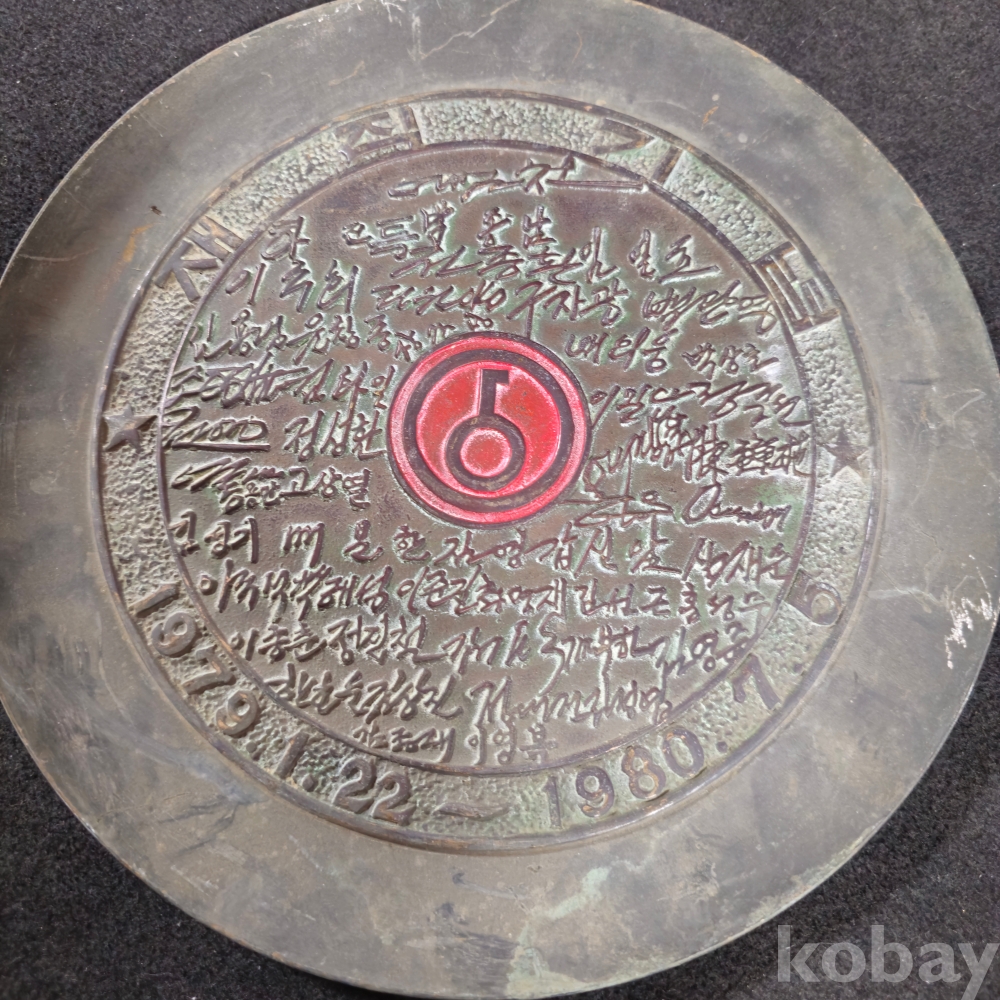 (((군자료))) 1972년 열쇠부대 재직기념 놋쇠 벽걸이 접시