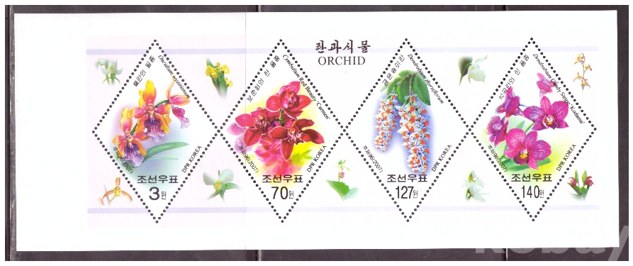 (식물) 북한 2007.8.3 란과식물 booklet pane of 4 MNH