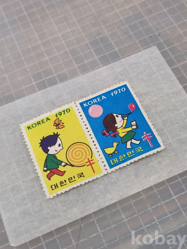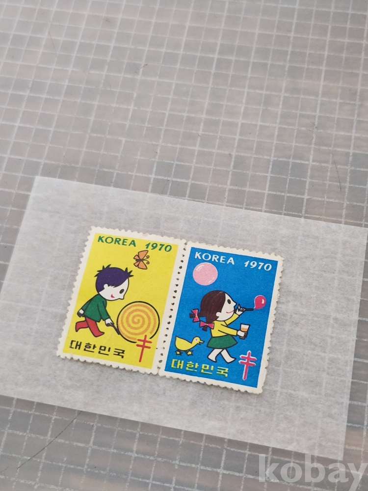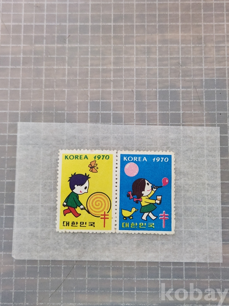 (땡처리) 1970년도의 씰 도안은 공모를 통해 조폐공사 도안실장 오동환 씨의 작품이 채택되었다. 골목에서 노는 어린이들의 아기자기한 모습을 소년과 소녀를 교대로 배치했으며, 동화 속의 한 장면을 연상케 하는 작품으로 전년에 이어 복십자 엽서도 발행되었다.