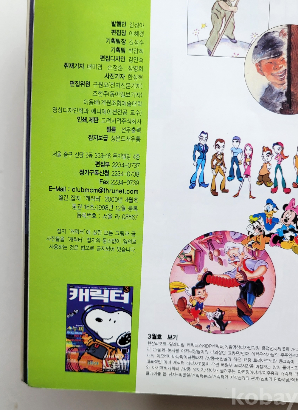 물 품 명 | 월간 캐릭터 (4) : Vol.16 국내최초 캐릭터 잡지 / 2000년 4월호 / 어센트미디어 |