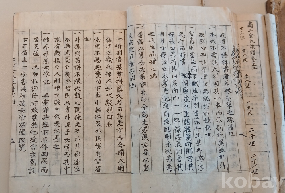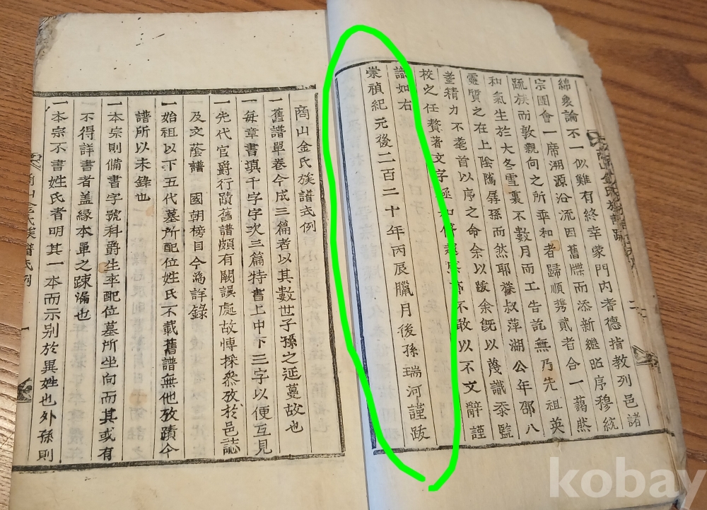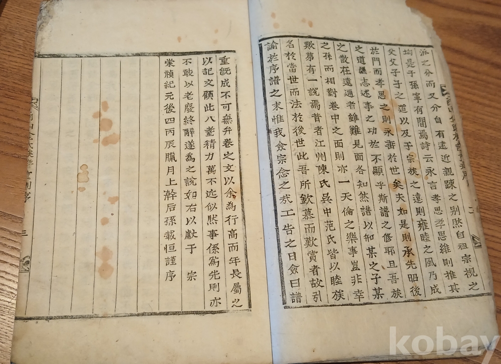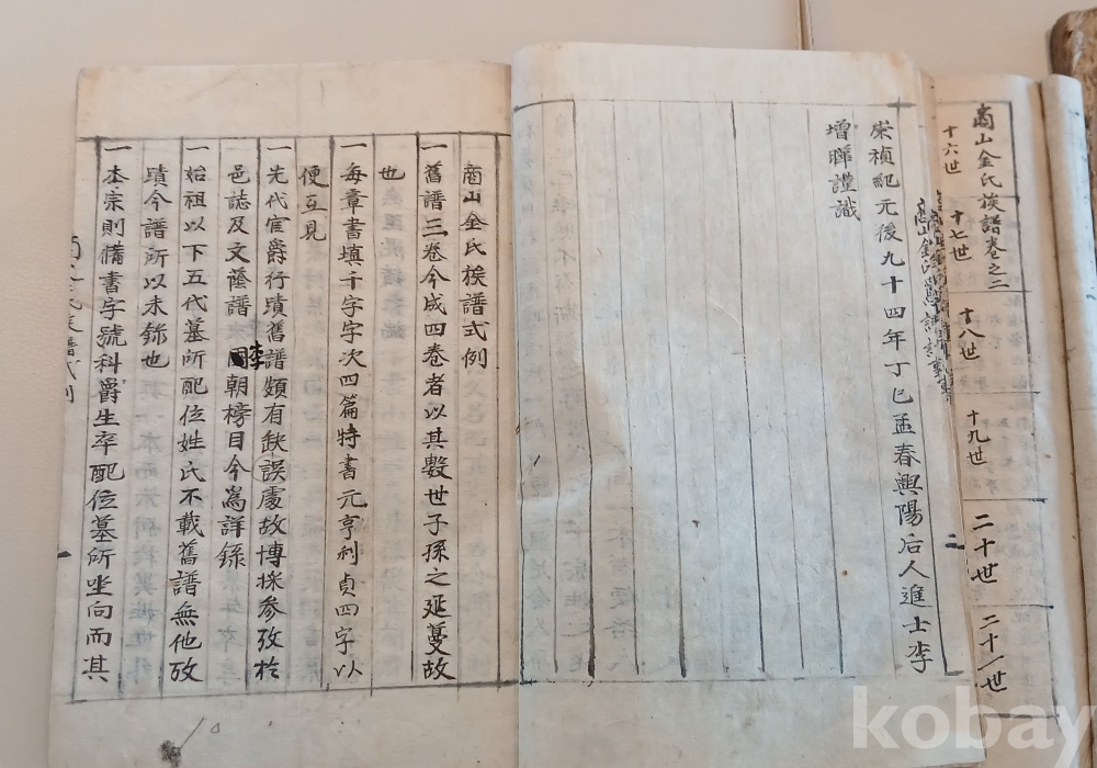 목판본으로 천,지,인 3책 완질본 跋文, 숭정기원후2백이십年(1847년)에 刊, 족보