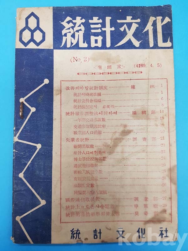 통계문화사 발행 [統計文化]*No.2 (1956.4.5.) 개선되어야 할 통계제도,통계보고정리법,실업자통계 등 32쪽