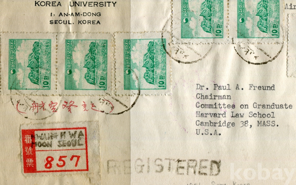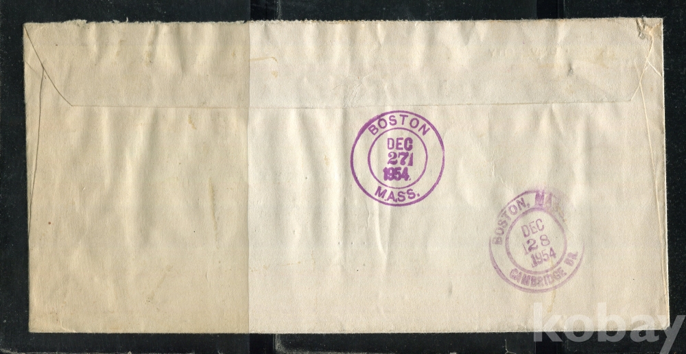 - [실체봉투] 1954년 100환 독도 10환 X 10매 미국행 등기실체 (광화문 54. 12. 23 소인-> BOSTON DEC.27.1954 접수인) : 이미지 참조하세요