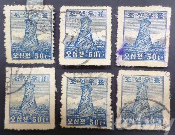 **** 미군정청보통 50전 첨성대 사용필 6매(색도차이)