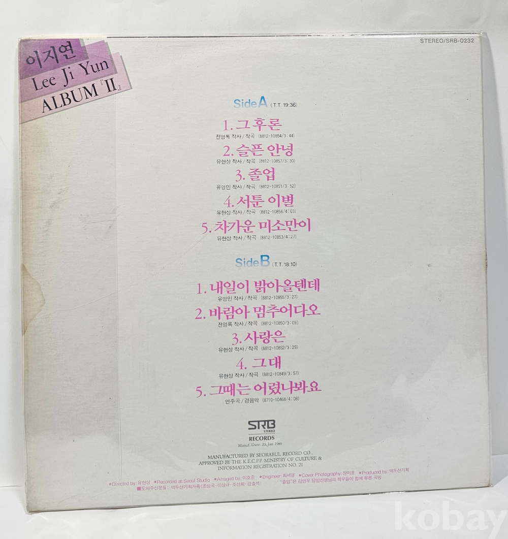 | 자켓상태 | EX : 약간의 마모, 모서리 찢김 존재 | 음반상태 | NM : 개봉했으나 미사용급, 스크래치 없음 | 발매정보 | 초반 | 가사지여부 | 유 |