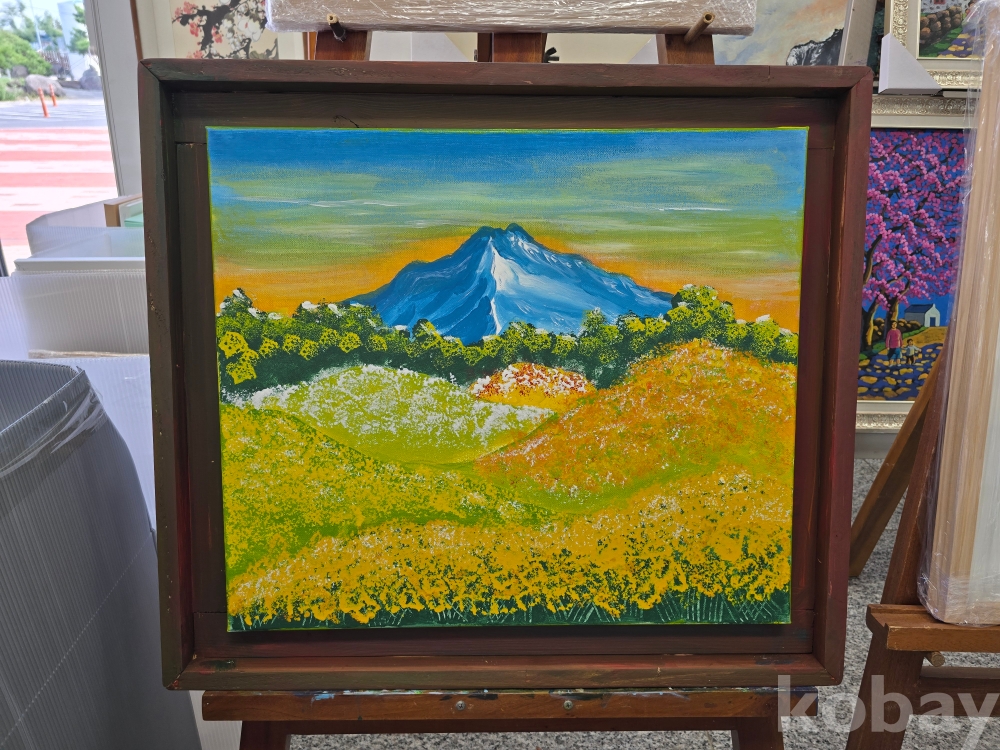 제주에서 구입한 아크릴화로, 지역 작가의 작품으로 추정된다. 색감의 조화와 풍경 구성이 안정적이며, 인테리어용·소장용으로 모두 적합하다.
