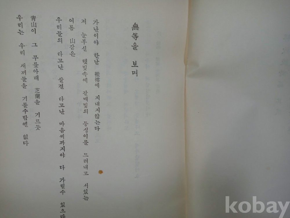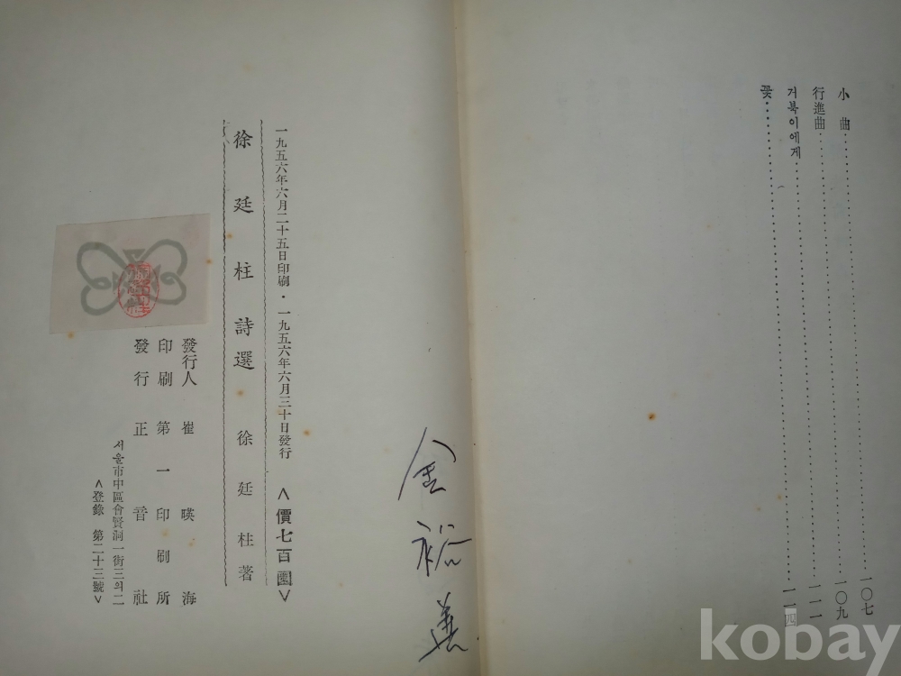 1956년에 발행된 서정주시선입니다. 책등 부분에 약간의 테이핑 흔적과
