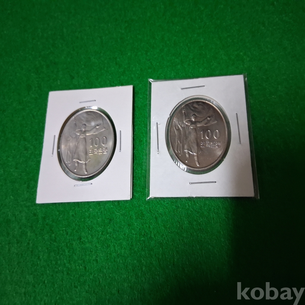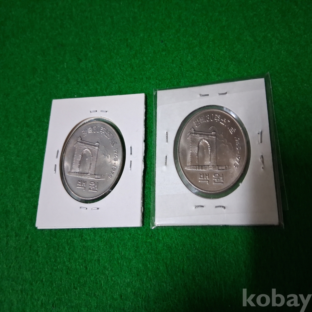 한국은행 1975년 광복30주년기념 100원화 2매 미사용