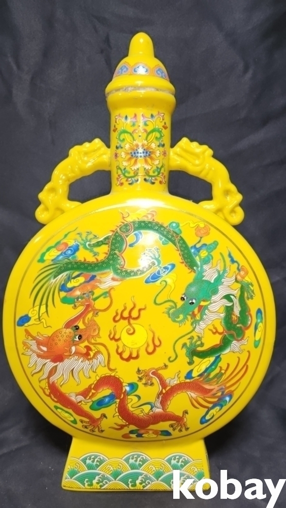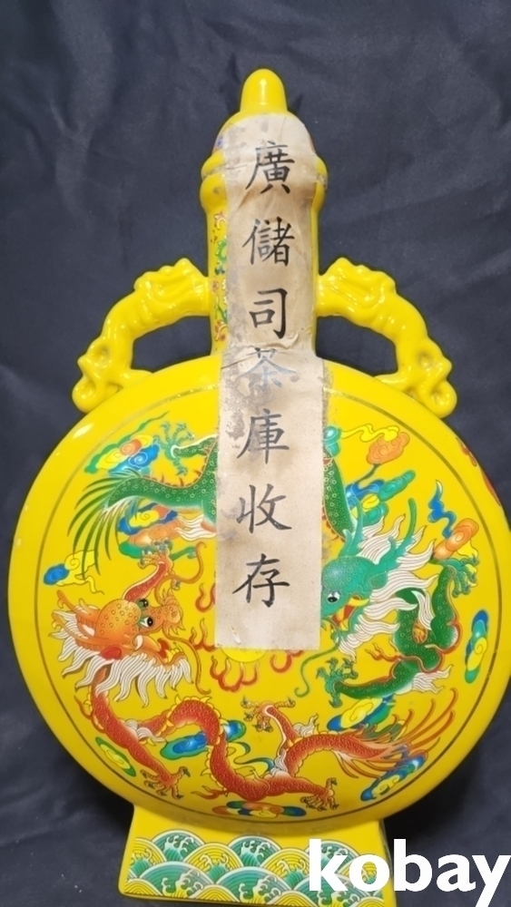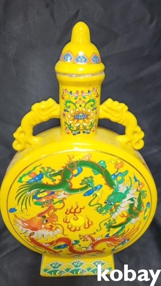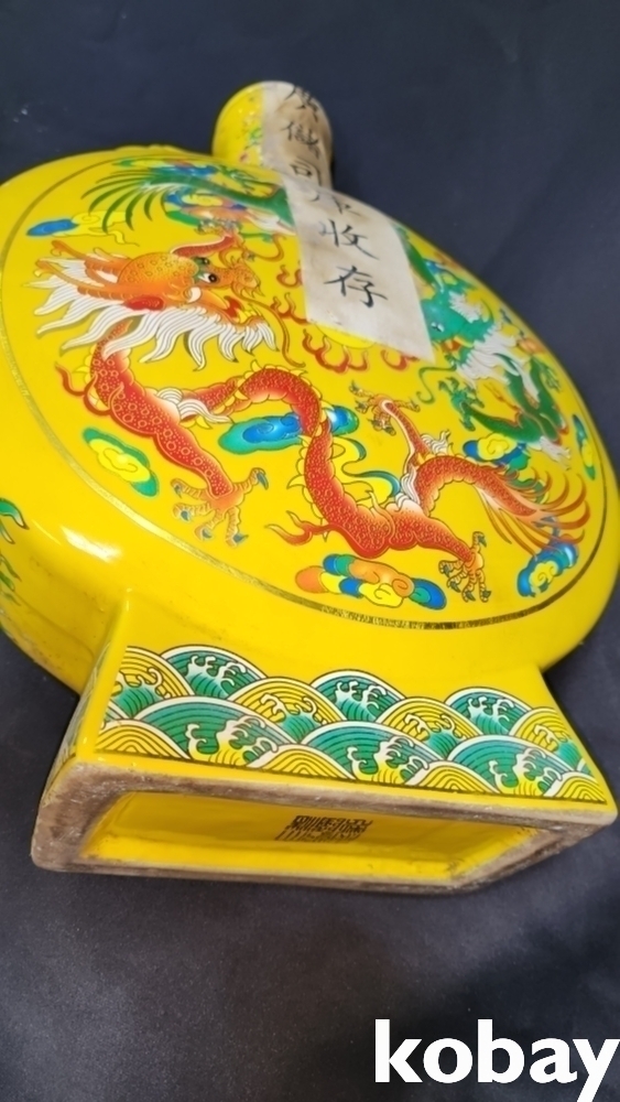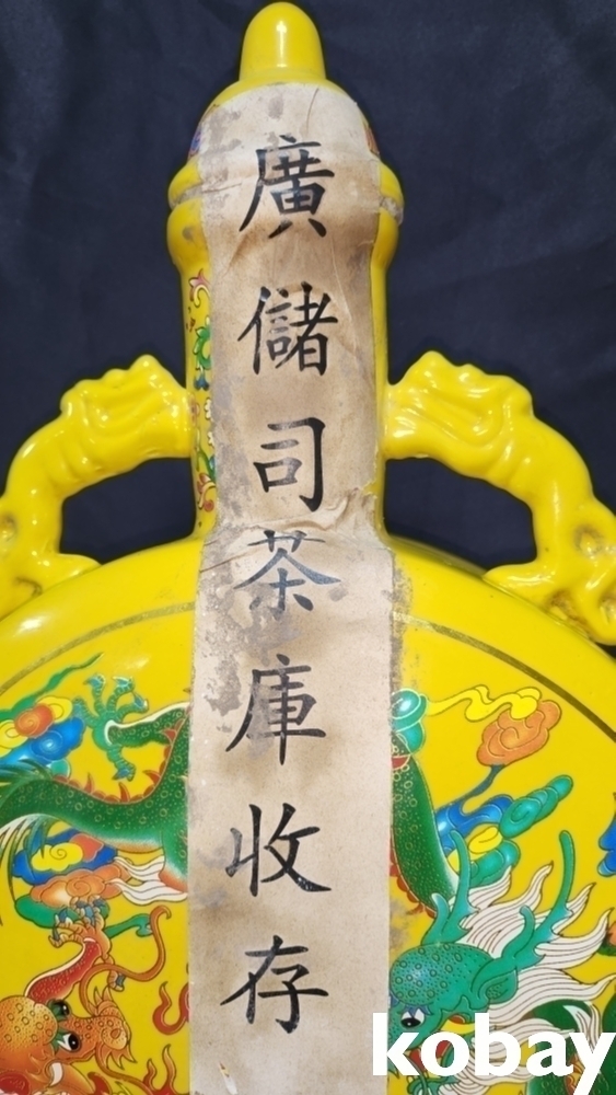 대청건륭년제 관지 황유 홍,청 용문양 보이차가 들어있는 편병입니다,