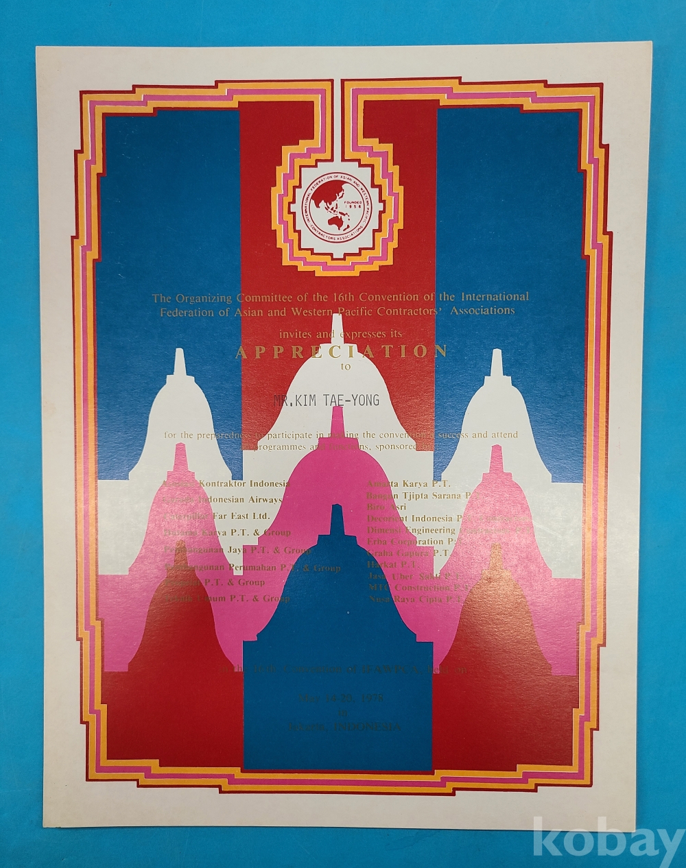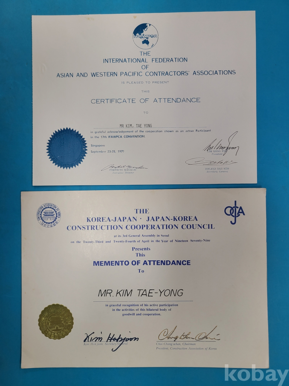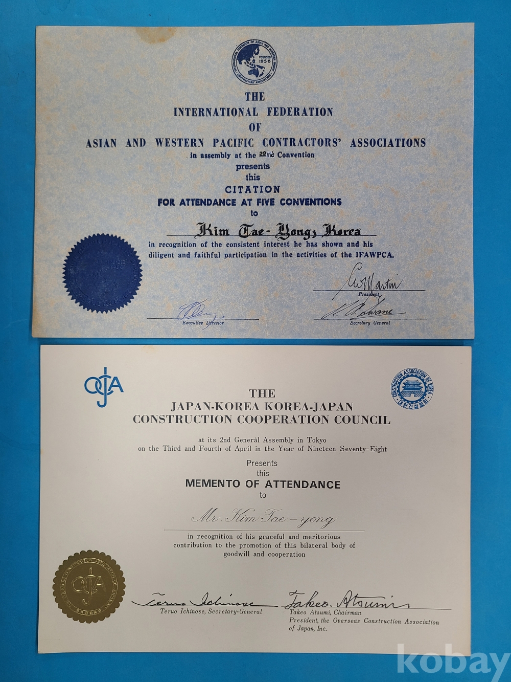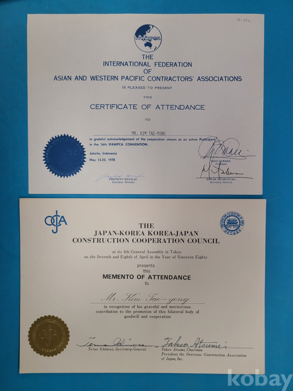 한일건설협력협의회 관련자료, 아시아서태평양건설협회국제연합회 관련자료 등