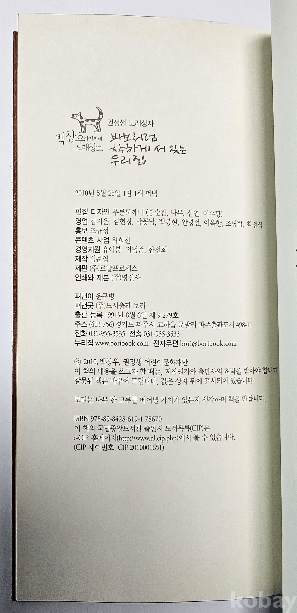 물 품 명 | 백창우 아저씨네 노래창고 권정생 노래상자 바보처럼 착하게 서 있는 우리집 / 2010년 초판 / 보리출판사 |