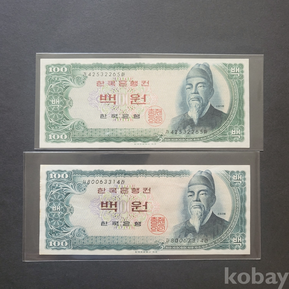 [근대사 화폐 기획전] 한국은행권 세종 백원 2매 일괄