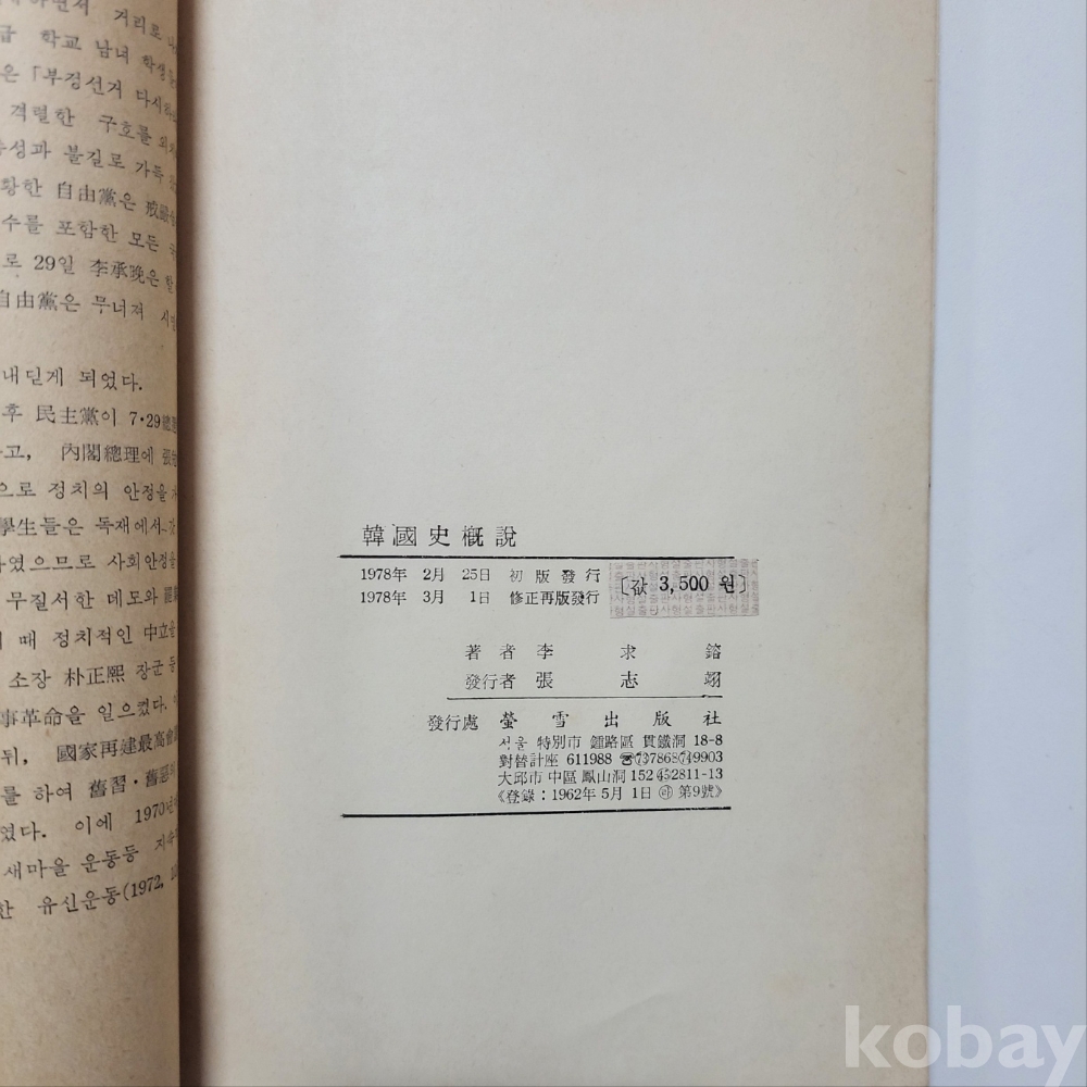한국사개설 1978년 발행본 : 중급(낡은감)/서고-동양01