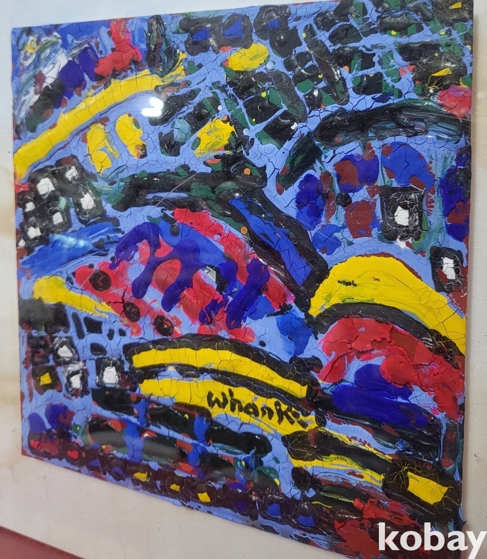 유명화가의 사인이 보이는 유화로 고급형 아크릴 액자입니다