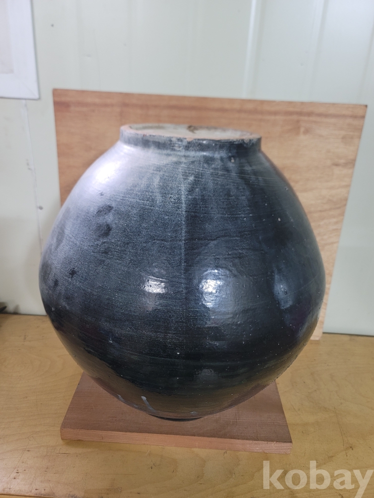 하지만, 숙제를 잘 풀면.. 상당한 고가에 거래가 될만한 사이즈의 아래위 붙여 이어 만든 전형적인달항아리 형태를 갖고 있는 희귀 흑유 달항아리 입니다.