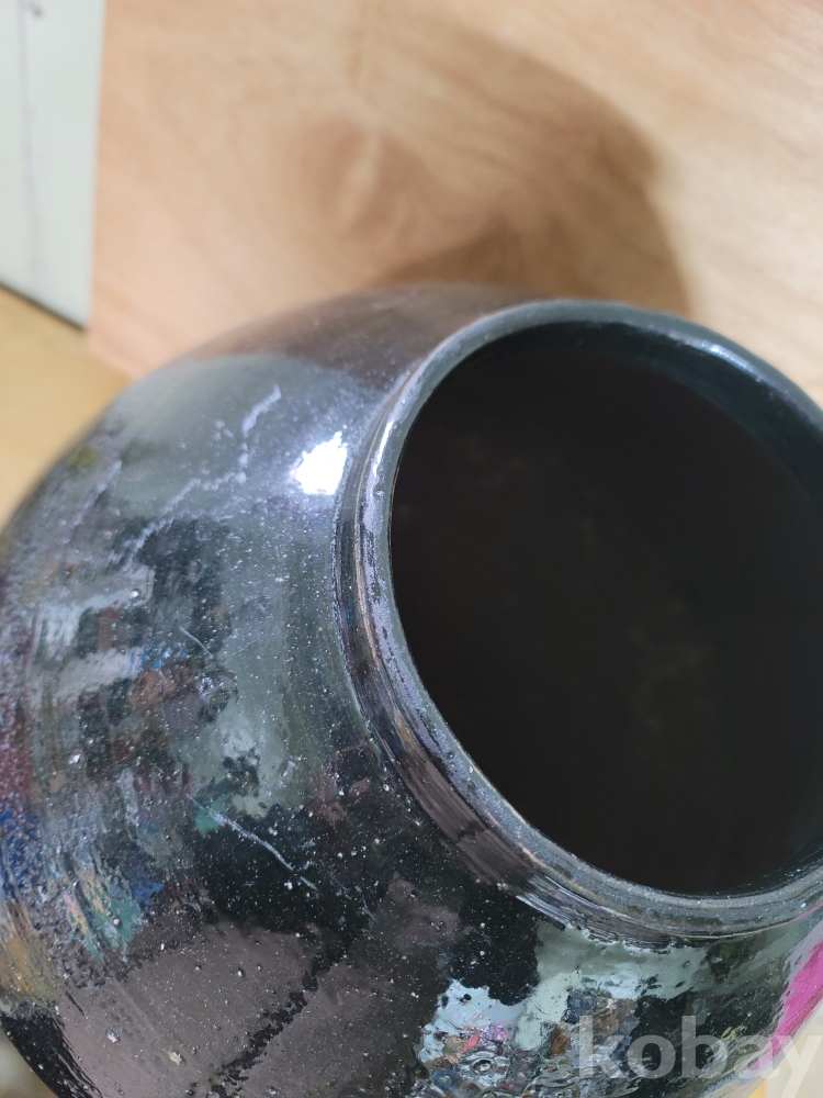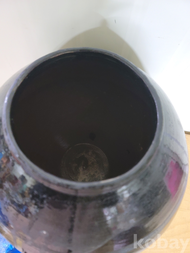 보는이에 따라.. 조선 말기에서 구한말 사이 작품이다?.. 왜정때 작품이다? 현대작이다? 일본 작품이다? 등등.. 의견들이 분분한 골치아픈? 숙제꺼리 희귀 흑유 요변 달항아리 입니다.