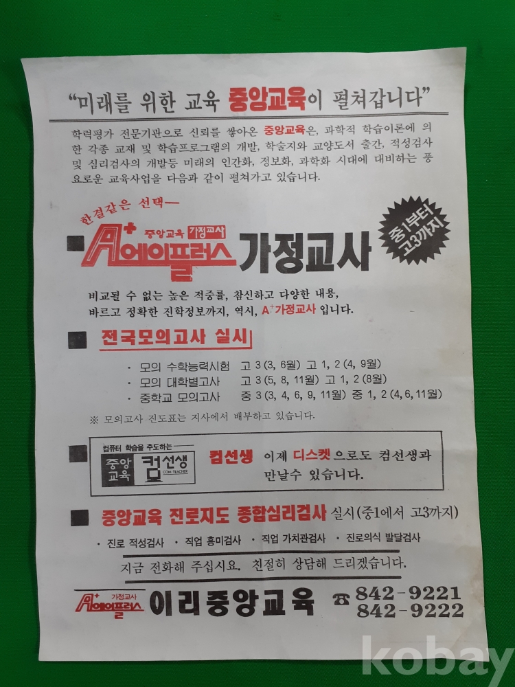 세월의 흔적 있으나 상태 양호 하며, 이리자동차 광고지 우측 상단 약간 구겨짐 있습니다