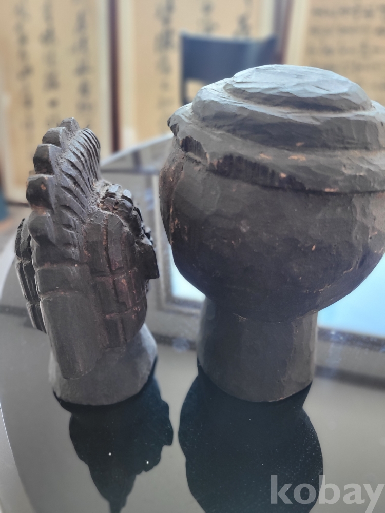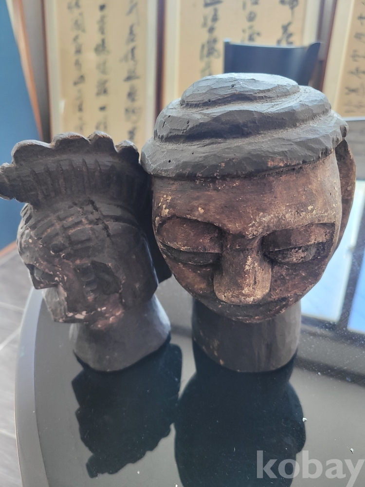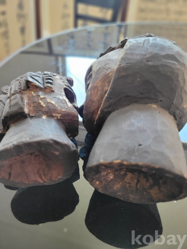 세월의 흔적이 깊은 목불입니다. 나무재질로 만들어졌고 가볍습니다. 골동하시는 분이 200년 이상된 기물이라 하였습니다. 안목으로 선택하시길 바랍니다. 2개 일괄입니다. 작은거 높이 17, 큰거 19입니다. 소장하고 계시면 컬리티가 높은 기물입니다.