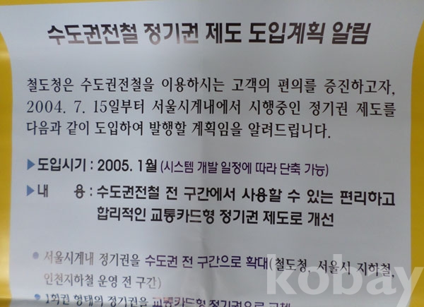 [1] 수도권전철 정기권 제도 도입계획 알림 [2] KORAIL 페스티벌 문화한마당 공연일정