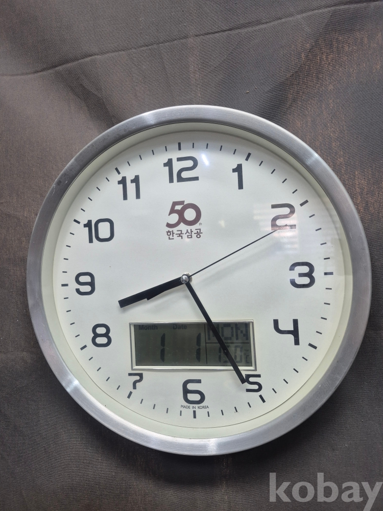50주년 한국 삼공 (한국 섬유 산업 연합회) 원형 디지털 과 아나로고 벽시계 정상작동 35*35*5