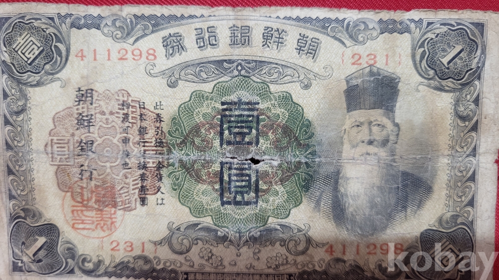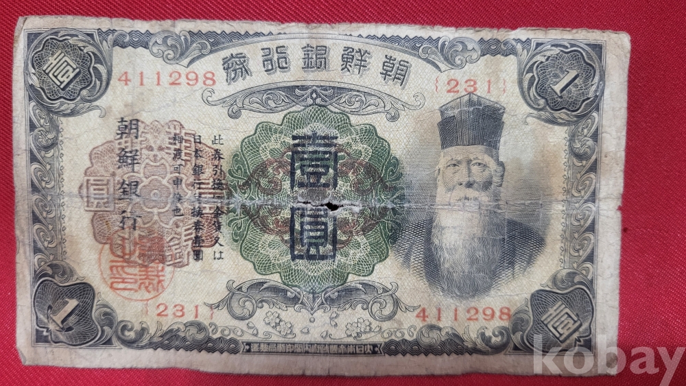 조선은행의 일원 지폐는 일제강점기 조선에서 유통되던 공식 화폐로, 일본 제국 통화 시스템에 편입된 화폐입니다.