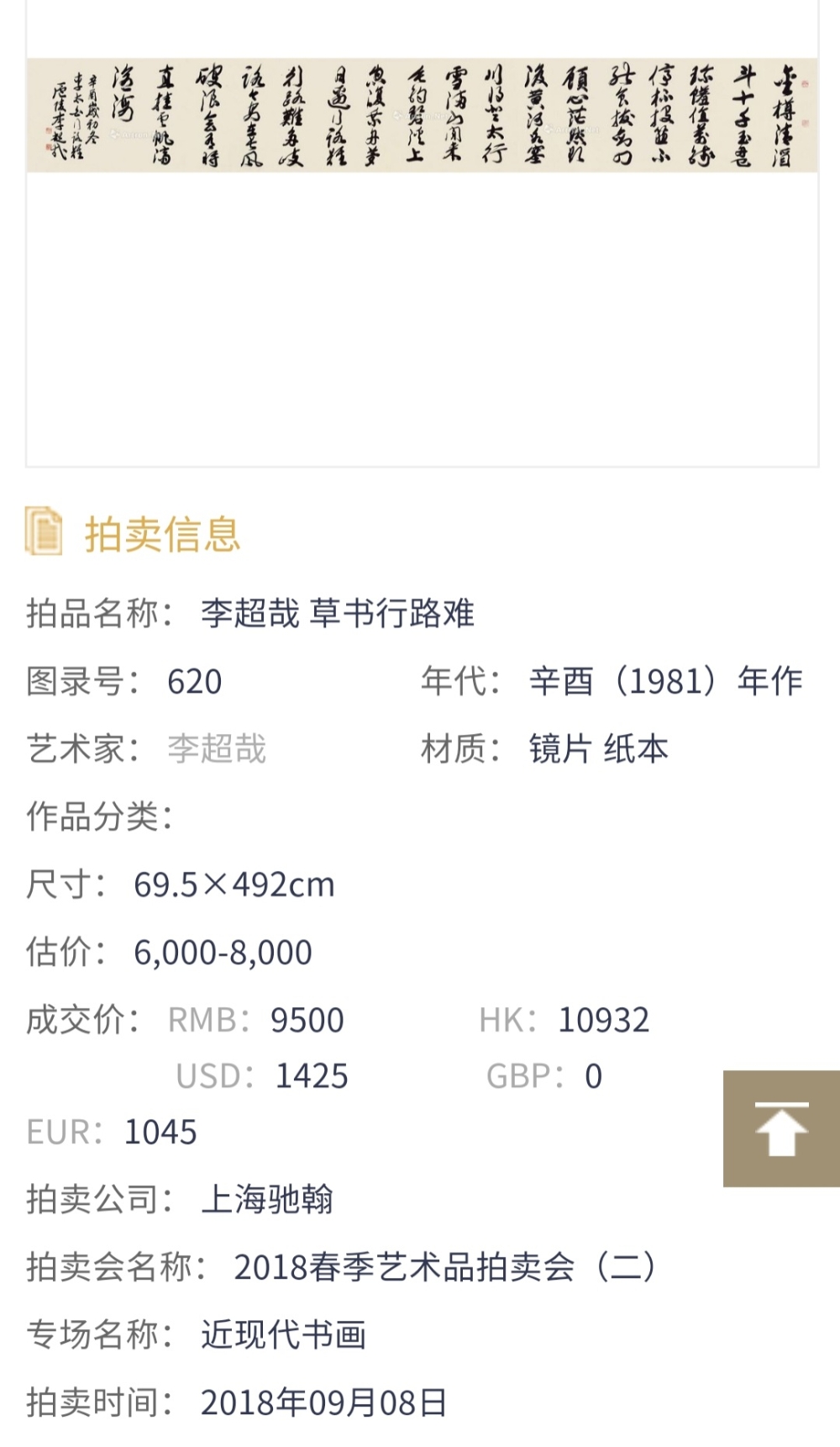 작품가로31.4㎝×세로133㎝ 내외