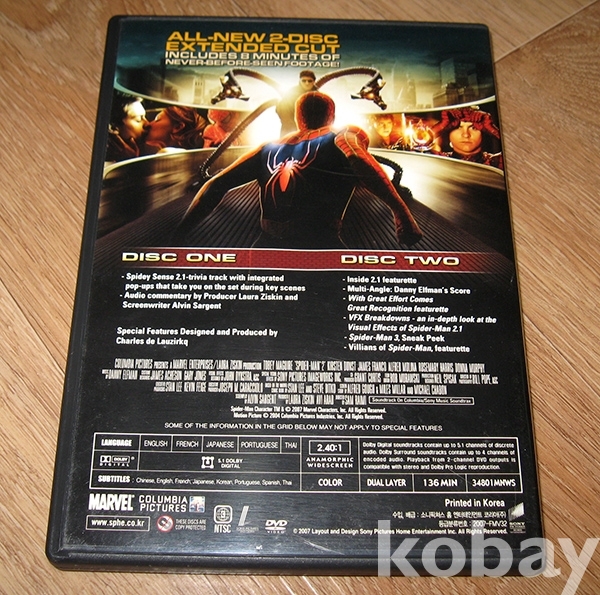 스파이더맨 2.1 확장판 (2007년) DVD ( 2DISC /상영시간: 130분)