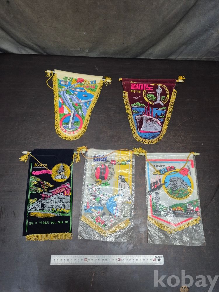1970년대 관광기념 페넌트 금강유원지 월미도 불국사 대천해수욕장 속리산 관광기념 페넌트 5점 일괄