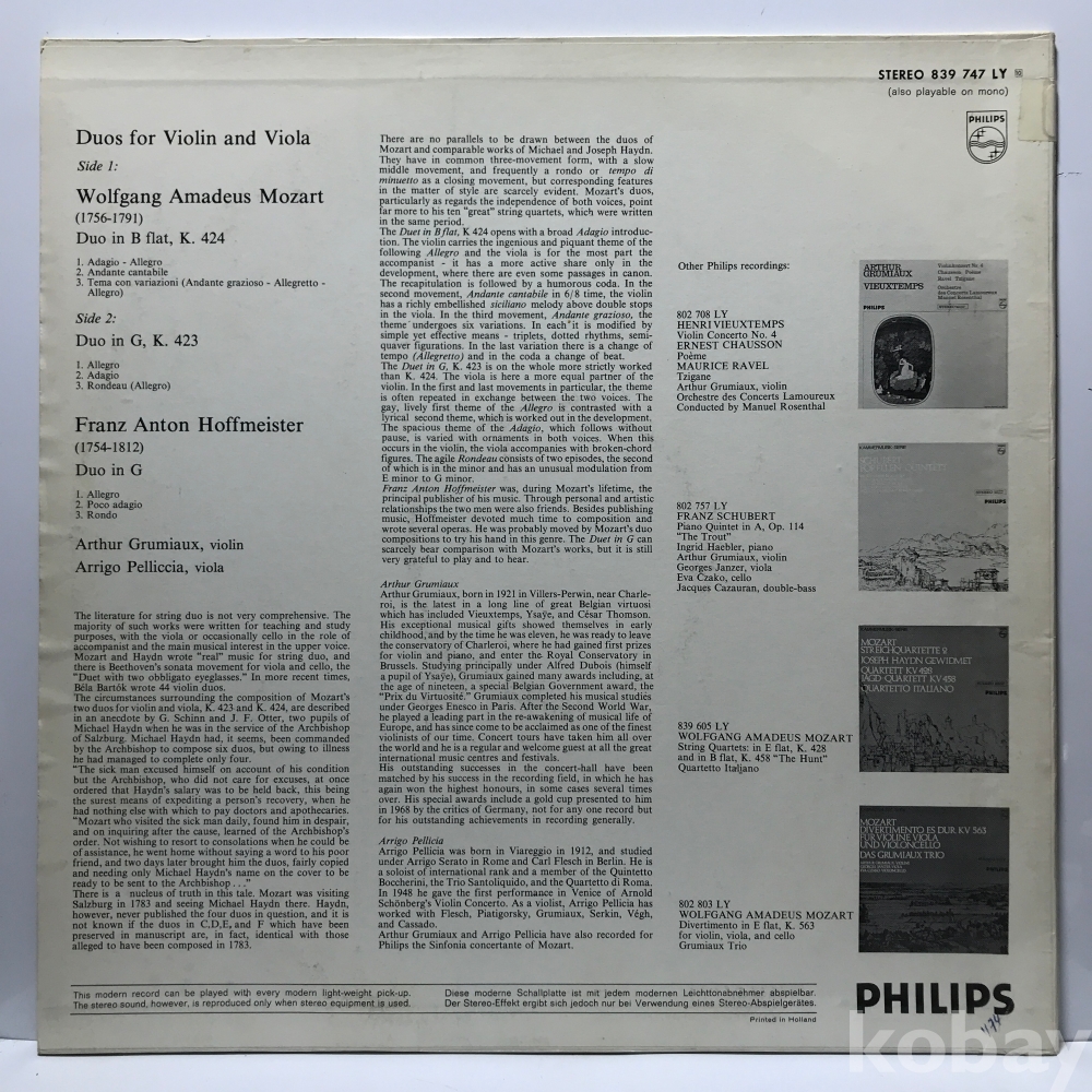 LP 36,050-44 Mozart Hoffmeister Duos For Violin And Viola- Arthur Grumiaux . 수입 자켓 EX 알판 EX+