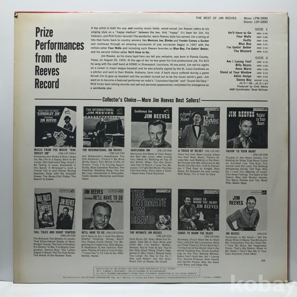 LP 82,350-31 The Best of Jim Reeves . 자켓 EX+ 알판 EX+ 74 년제작 국내반
