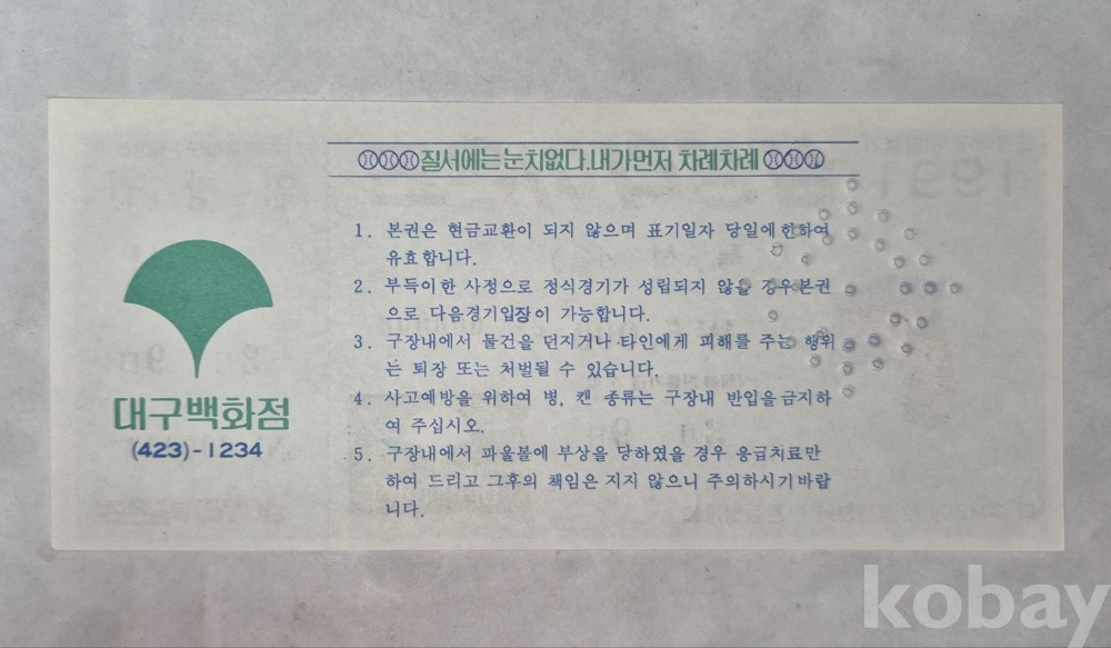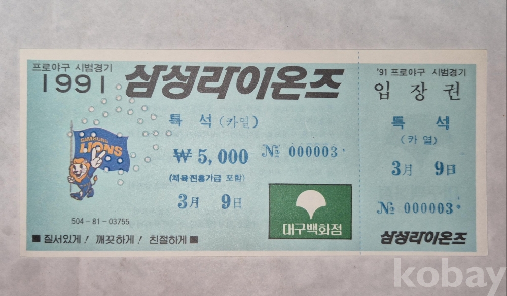 1991년 한국 프로야구 '삼성라이온즈' 시범경기 특석 입장권 1매입니다.
