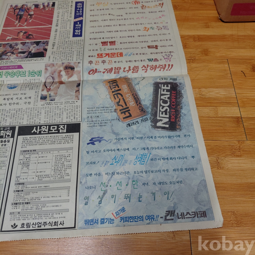 네스카페 캔커피 광고 조선일보 92년7월3일 올려드립니다