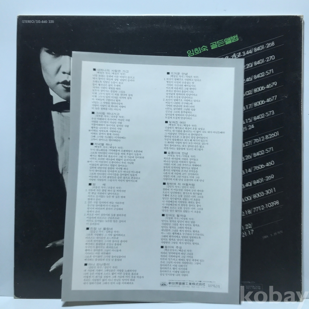 LP 36,150-69 임희숙 골든앨범 - 내하나의 사람은 가고 . 84 신세계 자켓 EX+ 알판 EX