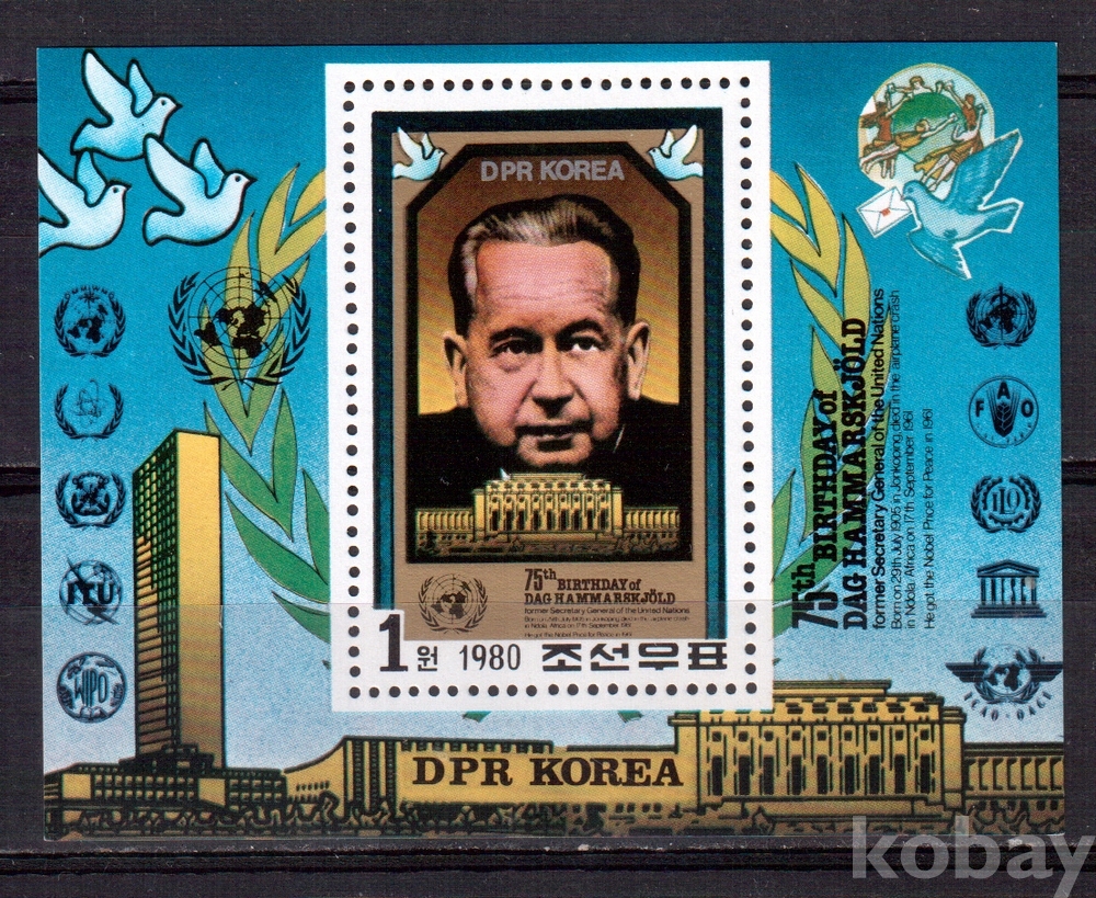(인물) 북한 1980.12.26 다그 함마슐드 생일 75돐 s/s MNH